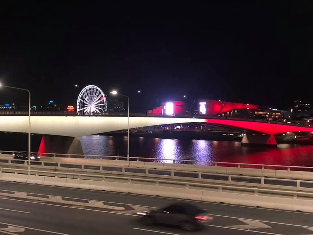 Zdj.5 - Brisbane nocą, most oświetlony w barwach polskiej flagi, własność PolArt2018