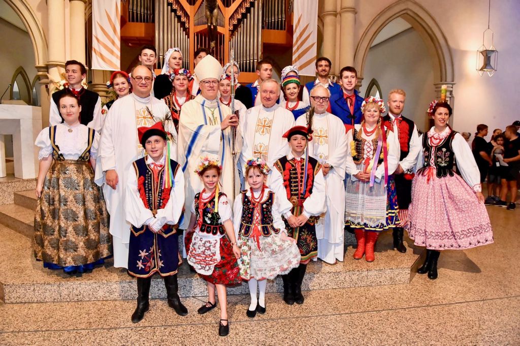 Zdj.11 - po Mszy Św. w Katedrze - biskup Kenneth Howell w asyście polskich księży: ks. T. Przybylaka, ks. G. Gawla, oj. T. Bujakowskiego i tańcerzy z różnych zespołów, autor R.Federowicz