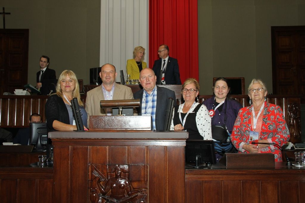 Zdj 9: Polska Delegacja Parlamentarna pod przewodnictwem Wicemarszałka Senatu p. Marii Koc wraz z Radą Polonii Świata w Litewskim Parlamencie. Drugi od lewej Jarosław Czubiński (Ambasador Polski na Litwie), Jan Cytowski (Prezes Rady Polonii Świata), Bożena Kamińska (Poseł RP),  Jarosław Narkiewicz (Marszałek Litewskiego Parlamentu), Leszek Wikarjusz (Prezes RNPA), Waldemar Kraska (Senator RP), Maria Koc (Wicemarszalek Senatu). Pierwszy z prawej Franciszek Spula (Prezes Kongresu Polonii Amerykańskiej).