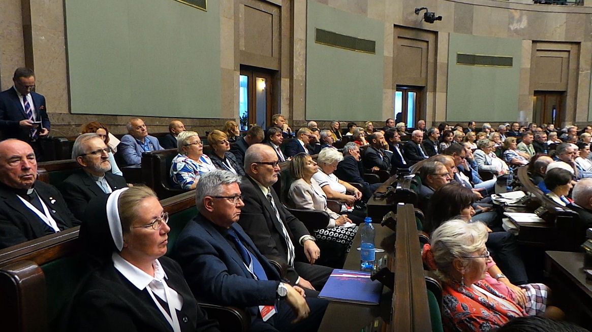Zdj 4: Podczas Konferencji „Obchody Millenium na Uchodźstwie” w Warszawie (18-19 Kwietnia). Prowadzący: prof. Jan Zaryn. Przy stole prezydialnym siedzą, od lewej: ksiądz prof. Stanisław Dziekoński (Rektor Uniwersytetu Kardynała Stefana Wyszyńskiego), Janina Sagatowska (Senator RP), Stanisław Karczewski (Marszałek Senatu RP), ks. biskup Wiesław Lechowicz (Przewodniczący Komisji ds. Polonii i Polaków za Granicą z ramienia Episkopatu Polski), Longin Komołowski (Prezes Stowarzyszenia Wspólnota Polska), Wojciech Kolarski (Podsekretarz Stanu w Kancelarii Prezydenta RP).