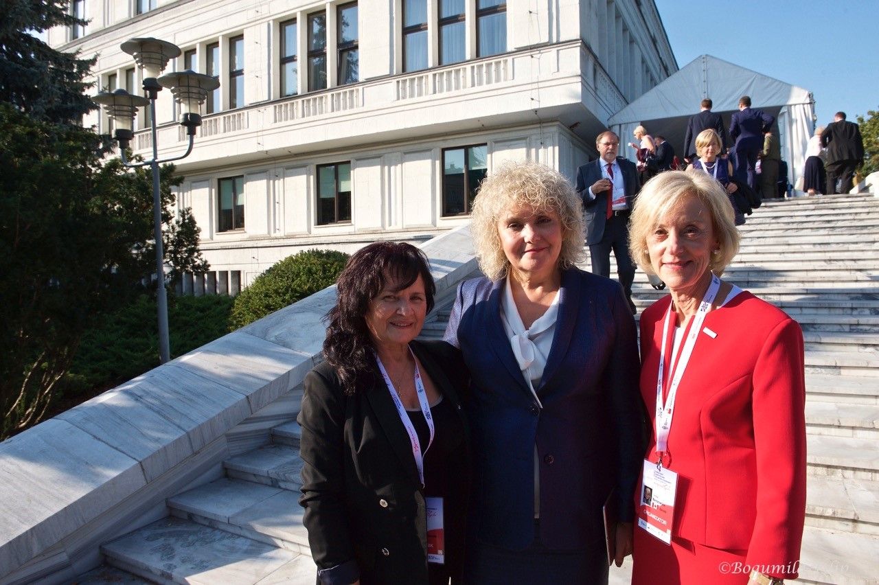 Zdj 5: W przerwie Konferencji „Obchody Millenium na Uchodźstwie”; od lewej: Tadeusz Adam Pilat (Prezes Europejskiej Unii Wspólnot Polonijnych, Szwecja), Janina Sagatowska (Senator RP), Barbara J. Kukulska (Przewodnicząca Zjednoczenia Polskiego w Johannesburgu), Michał Mackiewicz (Przewodniczący Związku Polaków na Litwie, poseł na Sejm Republiki Litewskiej).